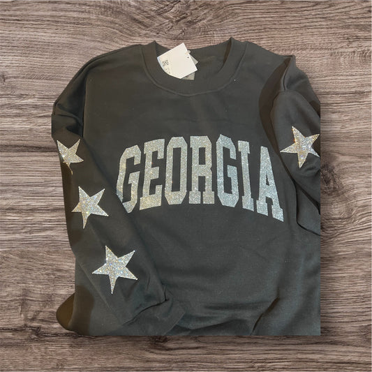 UGA Gameday Couture Star Sleeve with Glitter Logo Crewneck