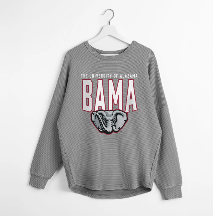 Get ready to show your Bama pride in style with the AL Gameday Couture corded pullover! This cozy pullover combines comfort and team spirit, perfect for cheering on Alabama in chilly weather. Its unique corded texture adds a fun twist to your game day outfit, making you stand out in the crowd. Whether tailgating or watching from the stands, this pullover keeps you warm and spirited all season long.