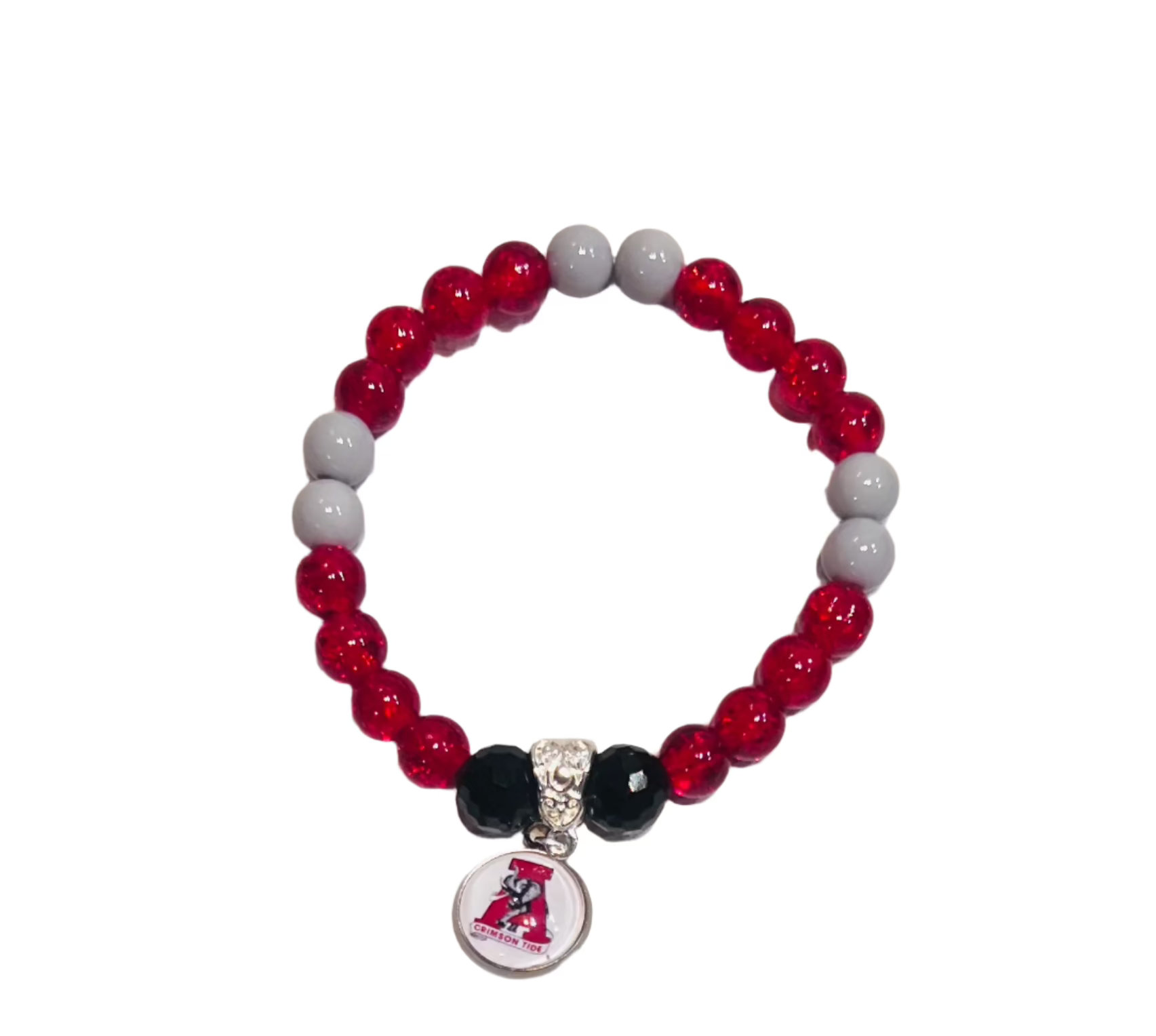 Perfect for any fan, this jewelry features the iconic AL logo, showcasing your pride for the Crimson Tide, This beaded bracelet is sure to show your team pride!