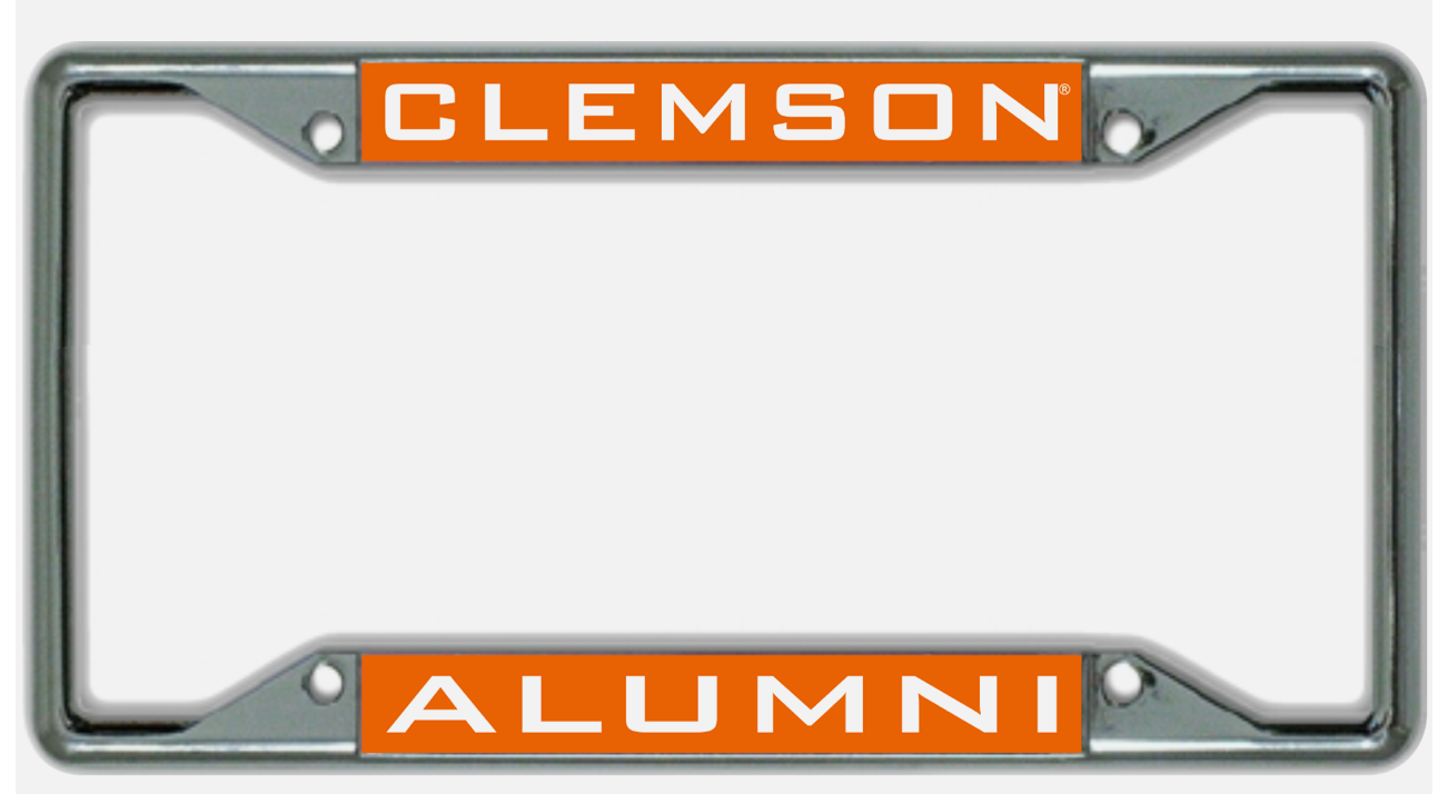 - Show off your Clemson pride with our metal domed Alumni License Plate Frame!