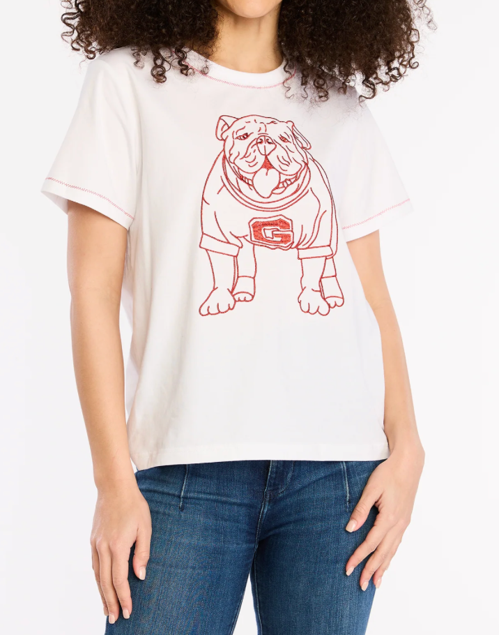 Cheer on the Bulldogs in style with the UGA Stewart Simmons Embroidered T-Shirt! This playful tee combines comfort and charm with its detailed embroidery, making it a must-have for any true fan. Whether you're at the game or hanging out, this shirt adds a fun, spirited touch to your wardrobe.