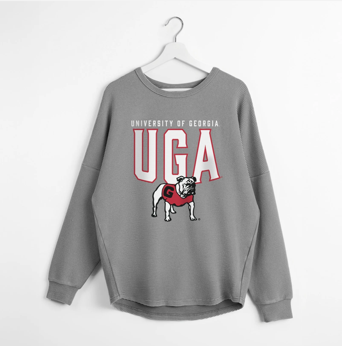 Get ready to show your Bulldog pride in style with the UGA Gameday Couture corded pullover! This cozy pullover combines comfort and team spirit, perfect for cheering on the Dawgs in chilly weather. Its unique corded texture adds a fun twist to your game day outfit, making you stand out in the crowd. Whether tailgating or watching from the stands, this pullover keeps you warm and spirited all season long.