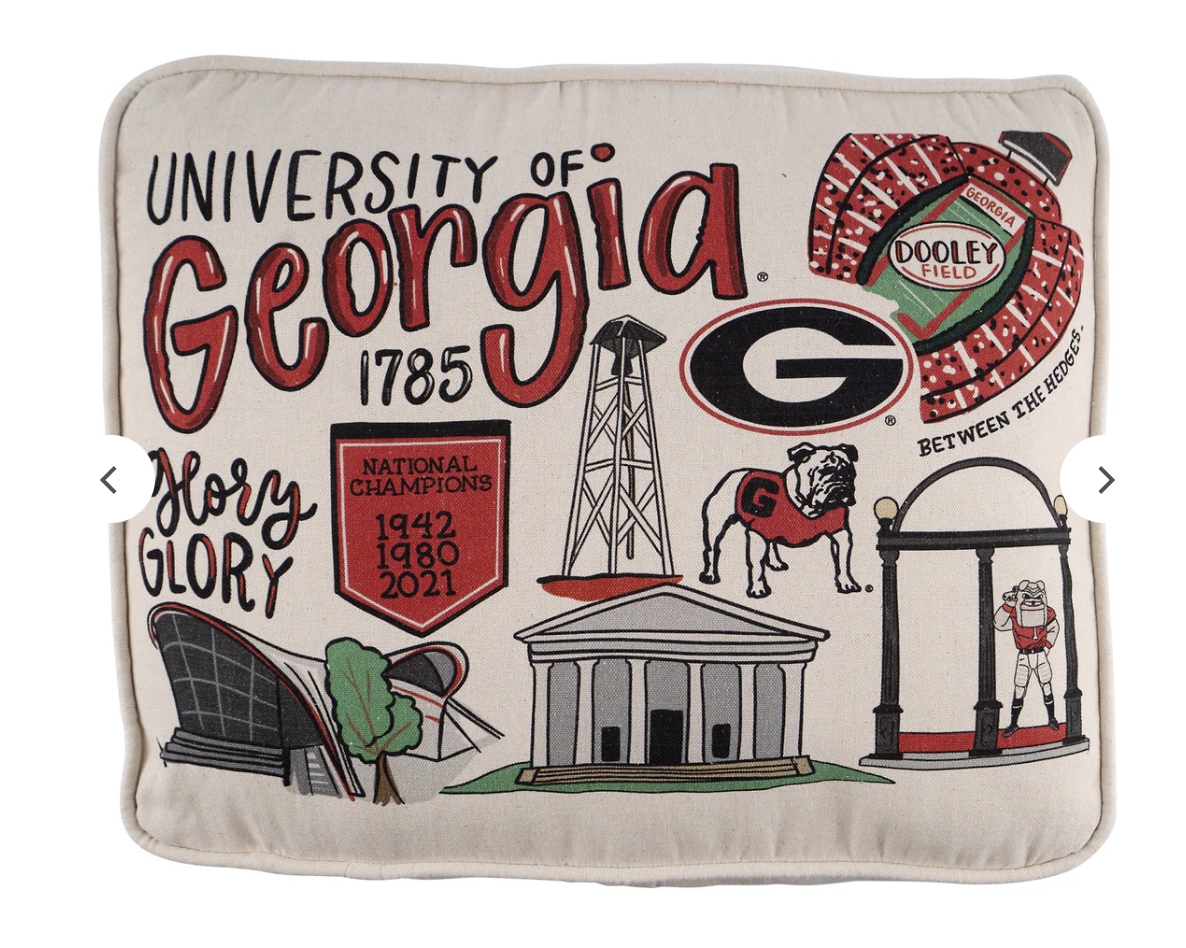 Celebrate the traditions of the University of Georgia with the Georgia Icon Pillow. Featuring a fun collage of Georgia’s most beloved icons, colors, and spirit symbols, this decorative pillow brings a bold pop of team pride to any space. Perfect for game day setups, dorm rooms, or living rooms, it’s both stylish and comfortable. A great gift for any Georgia Bulldogs fan, student, or alum who wants to display their school spirit year-round!